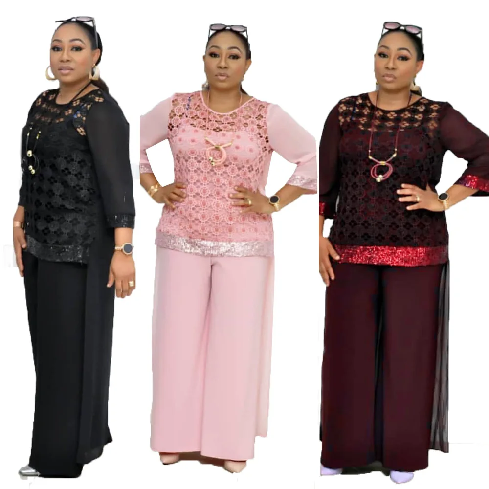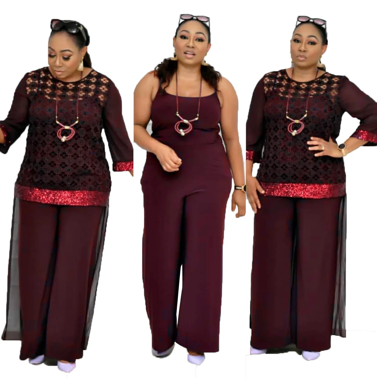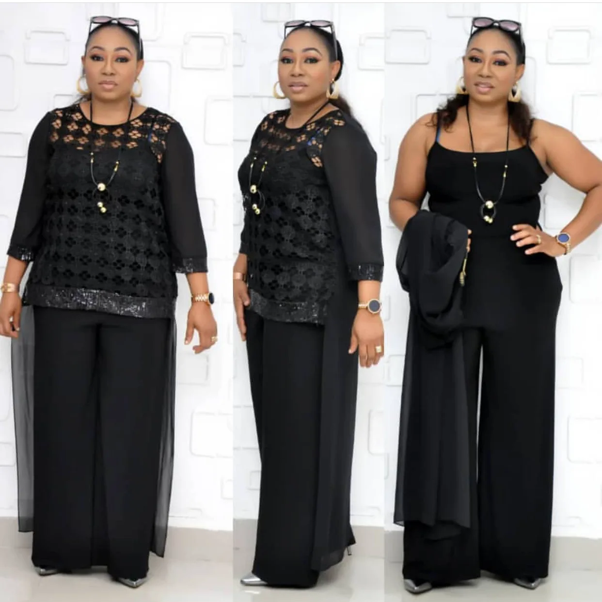 Promo Women Plus Size 3 Pieces Sets Office Work Clothes for Lady Female Black Tops and Full Length Jumpsuit Elegant 2 Piece Outfits