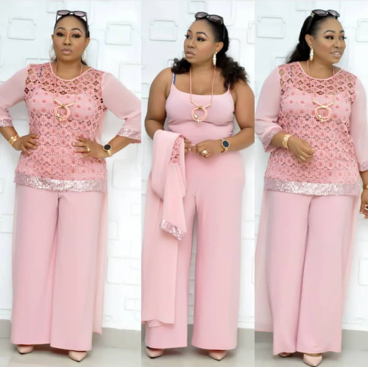 Buy Women Plus Size 3 Pieces Sets Office Work Clothes for Lady Female Black Tops and Full Length Jumpsuit Elegant 2 Piece Outfits