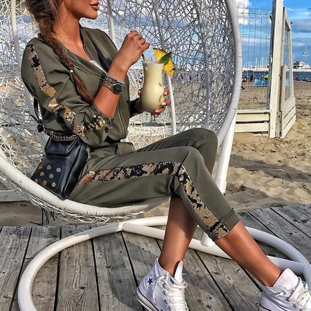 Get this Autumn Winter Fashion Tracksuit Leggings Sportswear Slim Outfit Women Splice Sequin Print Coat Elastic Skinny Two Pieces Set D30 with limited time discount by pressing the button below