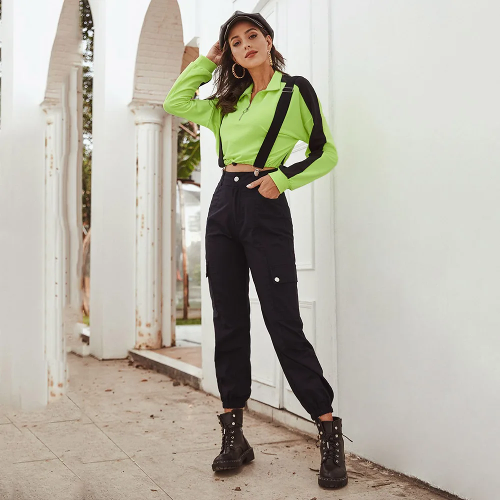 Best Offer Women street temperament high waist plus shoulder strap overalls trousers Jumpsuits
