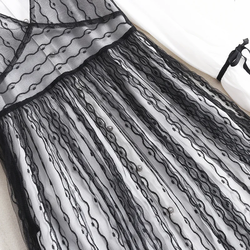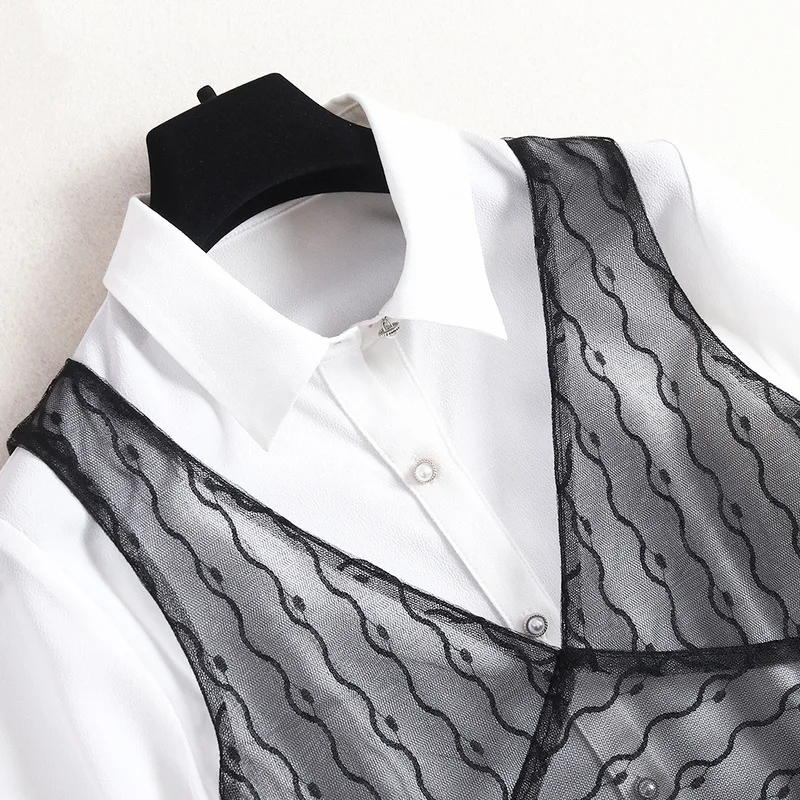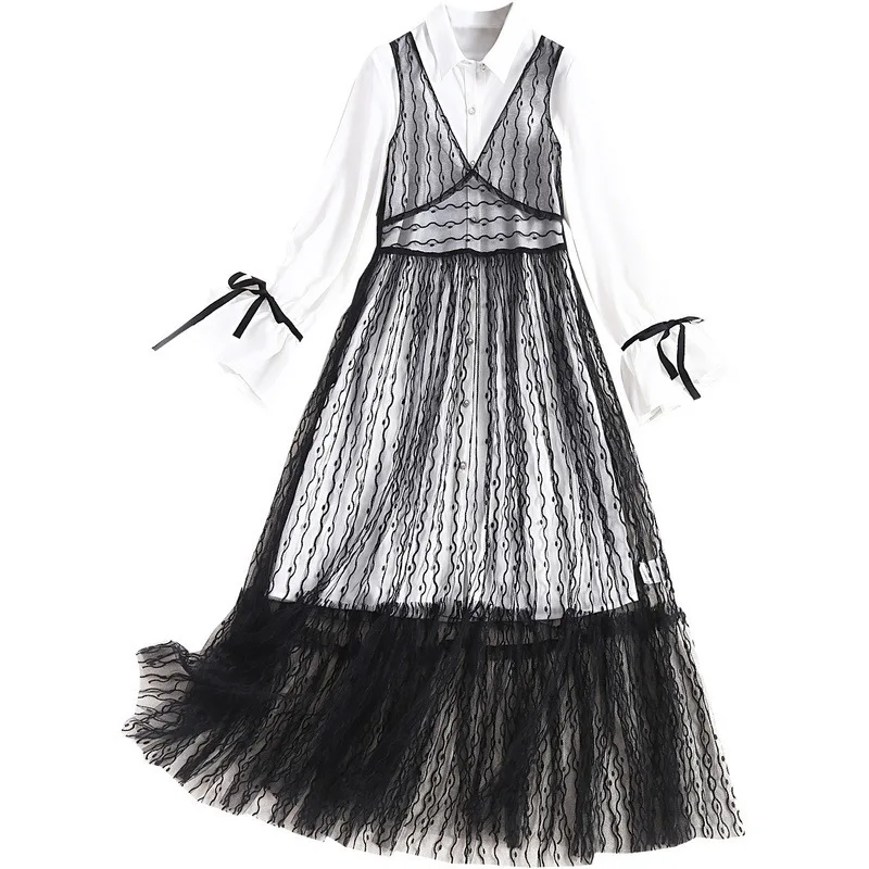 Promo Designer Women Sets Clothes White Shirt Dress+see Through Black Tank Dress Two Piece Dresses Set Women 2020 spring