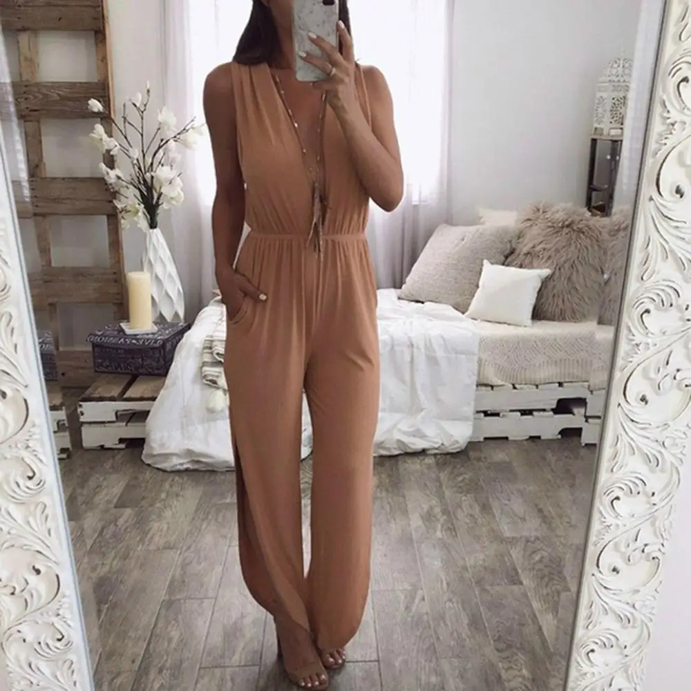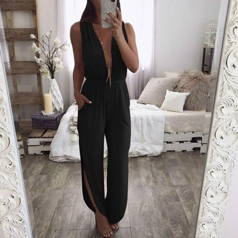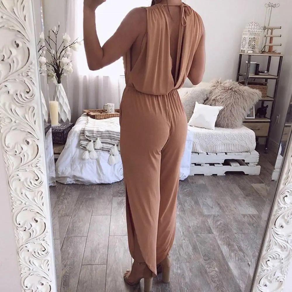 Best Offer Solid Color Women Jumpsuits Plus Size Deep V Neck Backless Sleeveless Loose Romper monos de fiesta 2020 New Drop Shipping E
