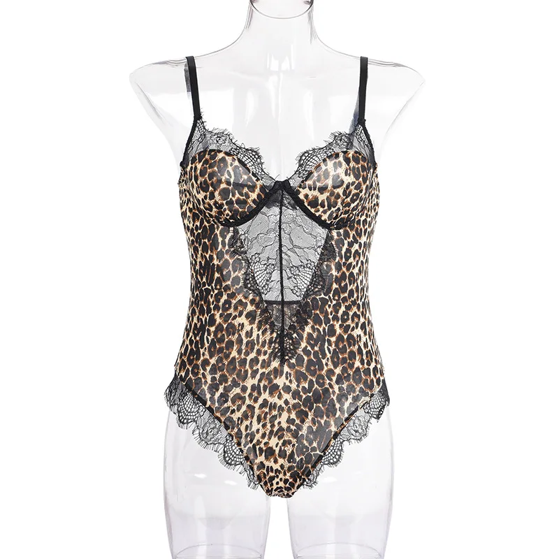 Best Offer Cryptographic Women's Leopard Bodysuits Hollow out Straped Lace Backless Rompers Fashion Autumn Ladies Animal Printing Bodysuits