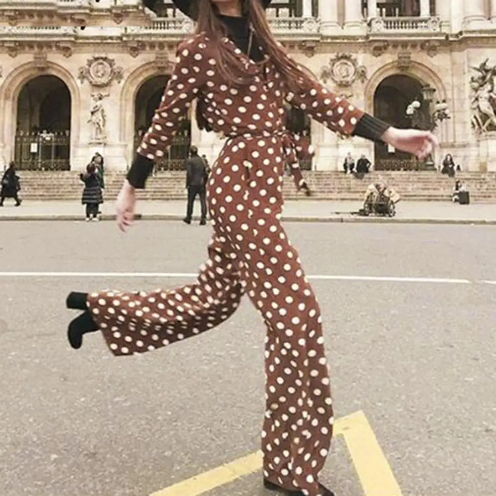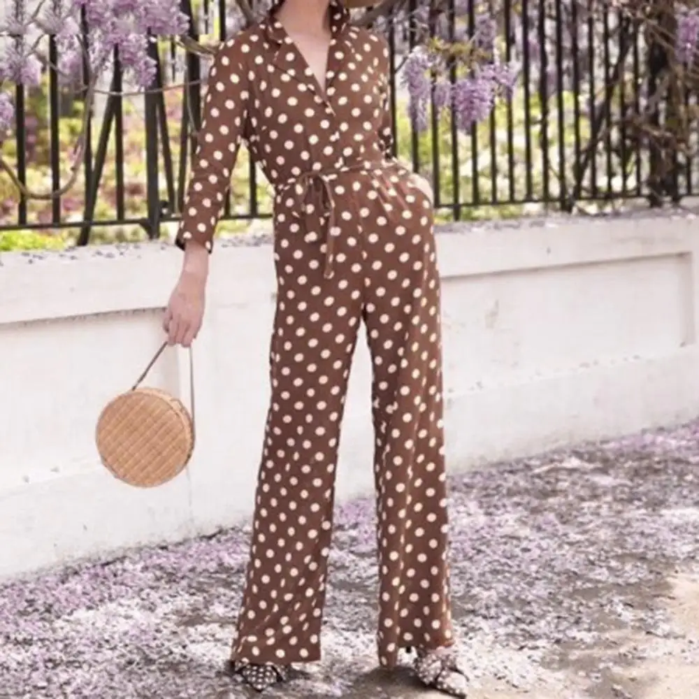 Promo Boho Rompers Womens Jumpsuit Dot Long Sleeve Lapel Jumpsuit With Belt Lace Up Overalls For Ladies Ropa Mujer 2020 Winter Spring