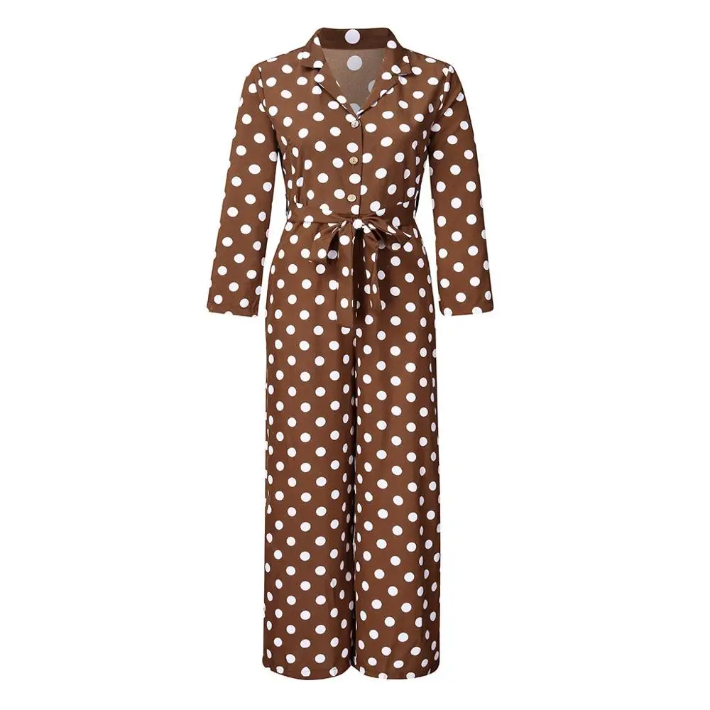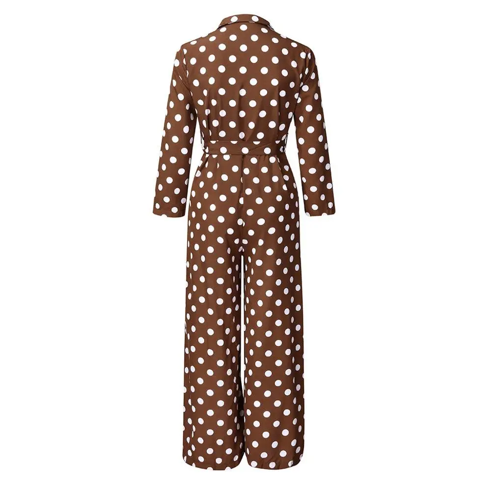 Get this Boho Rompers Womens Jumpsuit Dot Long Sleeve Lapel Jumpsuit With Belt Lace Up Overalls For Ladies Ropa Mujer 2020 Winter Spring with limited time discount by pressing the button below