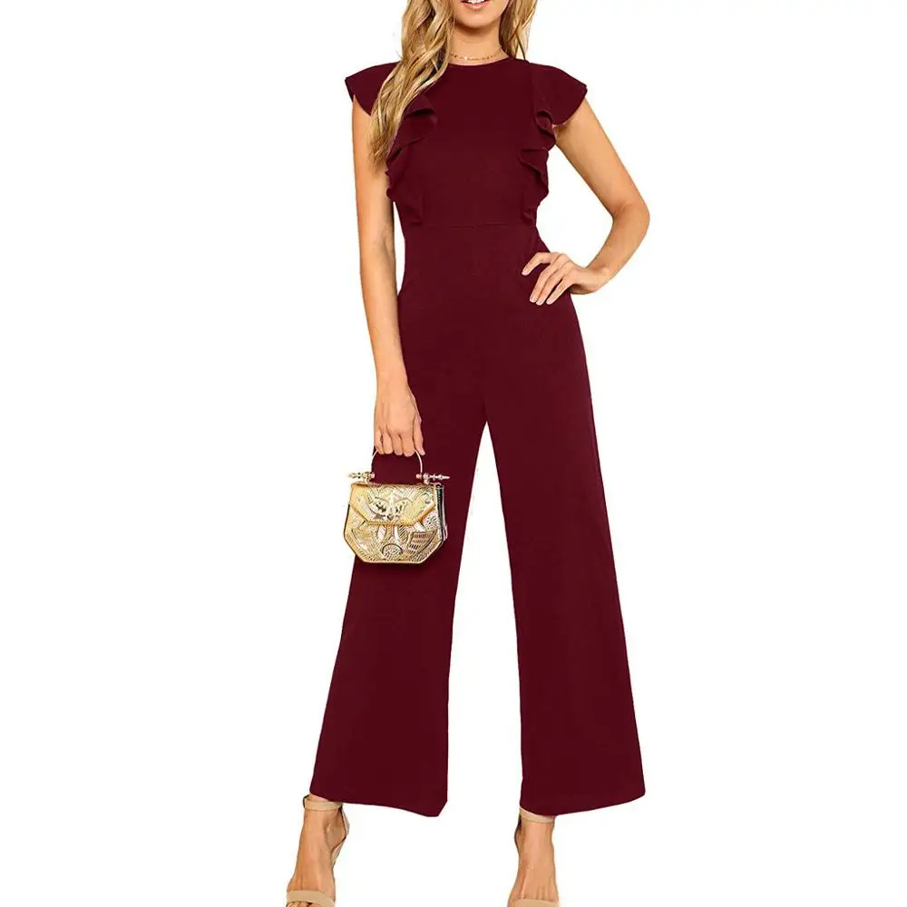Promo Chiffon Womens Jumpsuit Fashion Casual Solid Color Sleeveless O-Neck Ruffled Wide Leg Loose Playsuit Ropa Mujer 2020 New Hot E