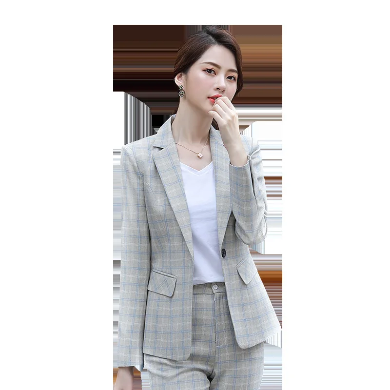 New female Gray / Pink Women's Pants Suits blazer dress with jacket office wear women trouser ladies costumes pant suit OL Style