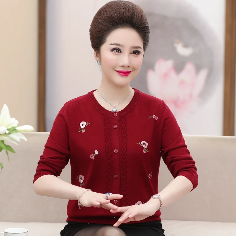 Best Offer High Quality Middle Aged Women Spring Autumn Cardigan 2019 New Female Elegant Floral Printed Knitted Outerwear Sweater Plus Size