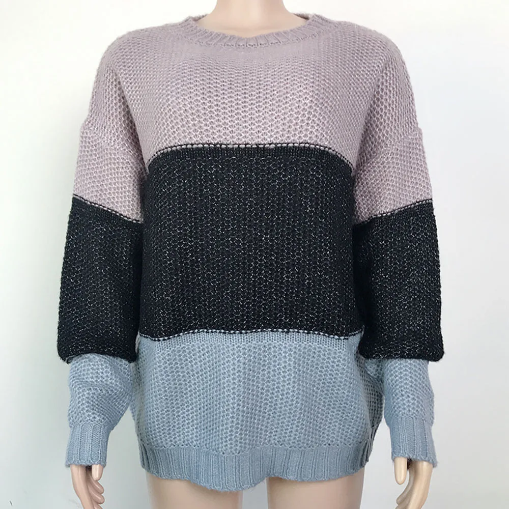 Promo Spring Autumn Plus Size Loose Lady Sweater Fashion Stripe Color block Pullover Women Thick Sweaters Long Sleeve Casual Women Top