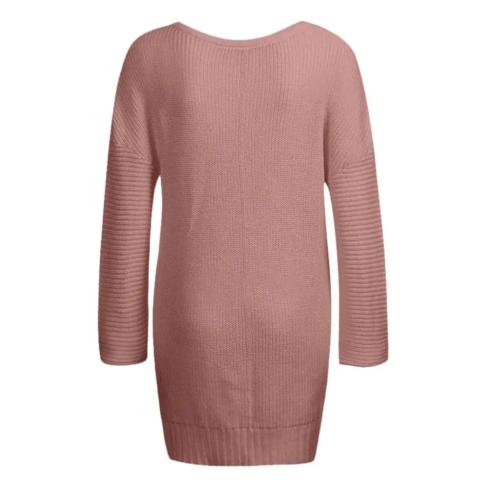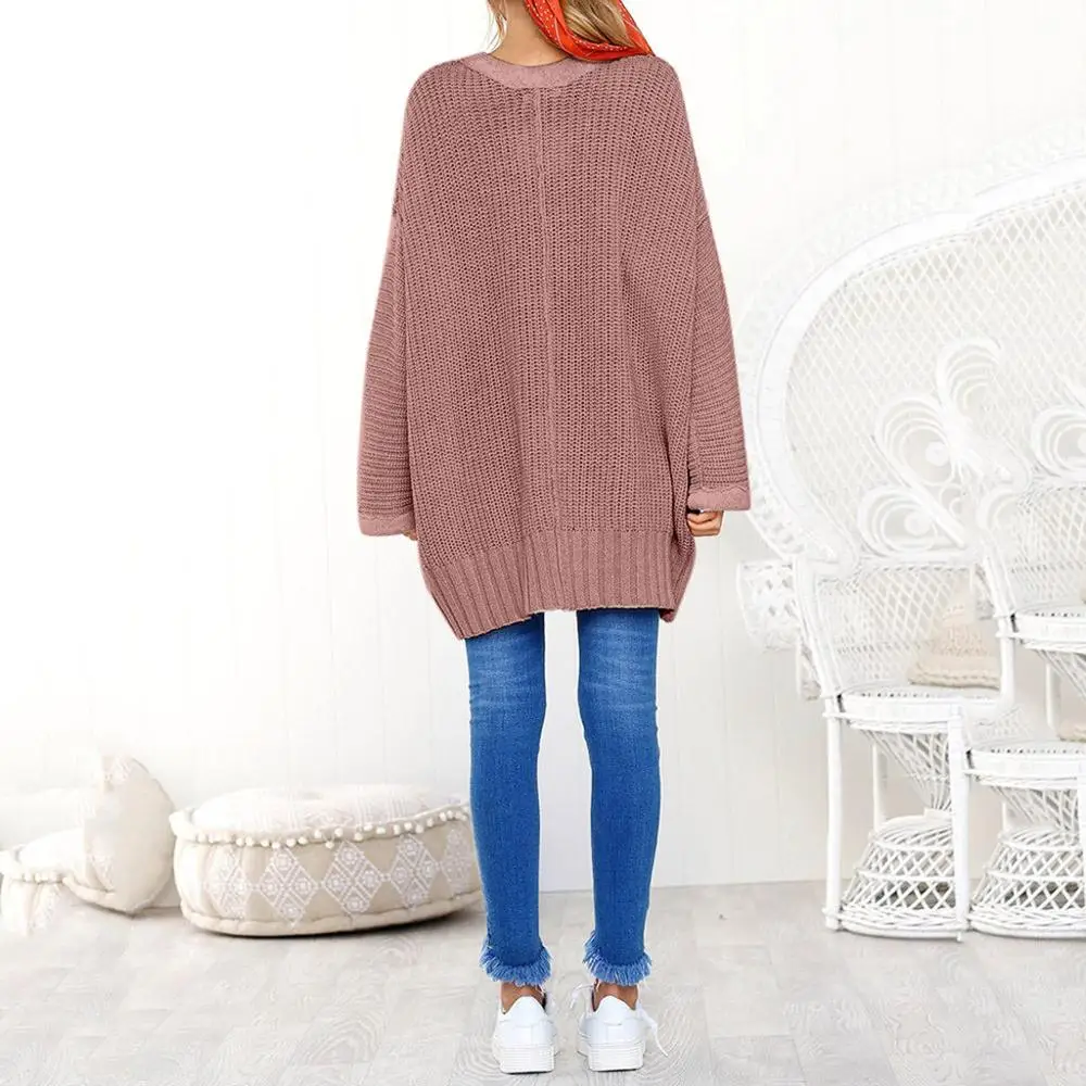 Promo Dujujunyi Lazy Loose Women's Sweater Solid Long Sleeve Jumper Pullover Blouse Casual V-Neck Pure Color Female Sweater Tops