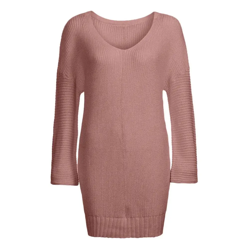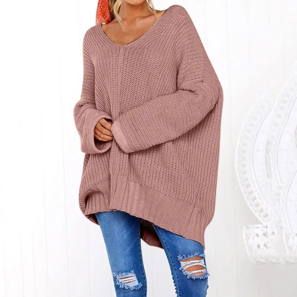 Buy Dujujunyi Lazy Loose Women's Sweater Solid Long Sleeve Jumper Pullover Blouse Casual V-Neck Pure Color Female Sweater Tops