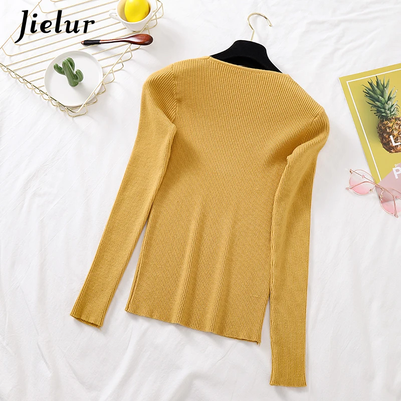 Best Offer Jielur Pullover Women Chic Knitting Sweaters 2020 New Spring Autumn Winter Solid Color V-neck Slim Pullover Sweater 11 Colors