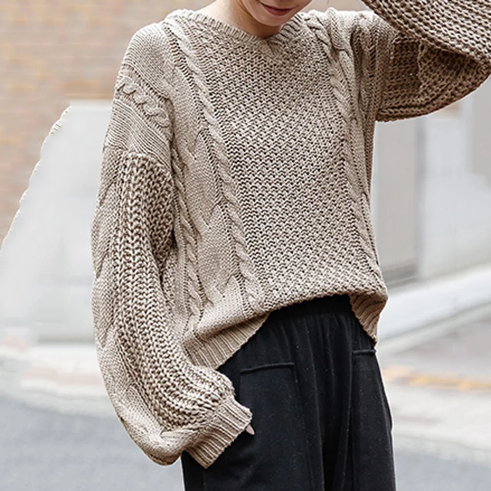 Promo Oversized Knitted Sweater Women Autumn Korean Elegant Plain Knitwear Office Ladies Causal Pullovers 5 Colors Minimalist Style