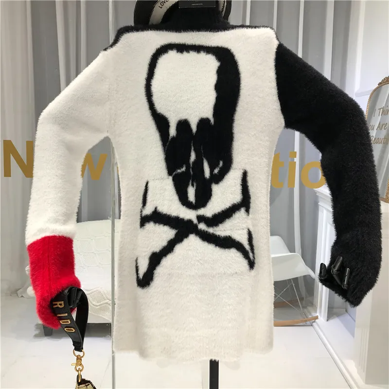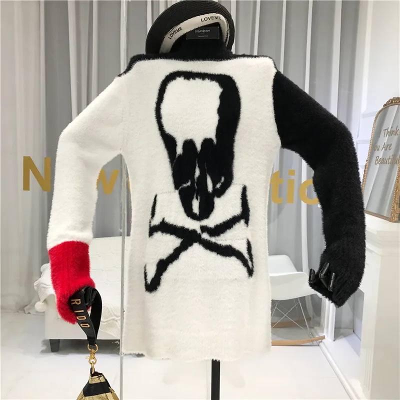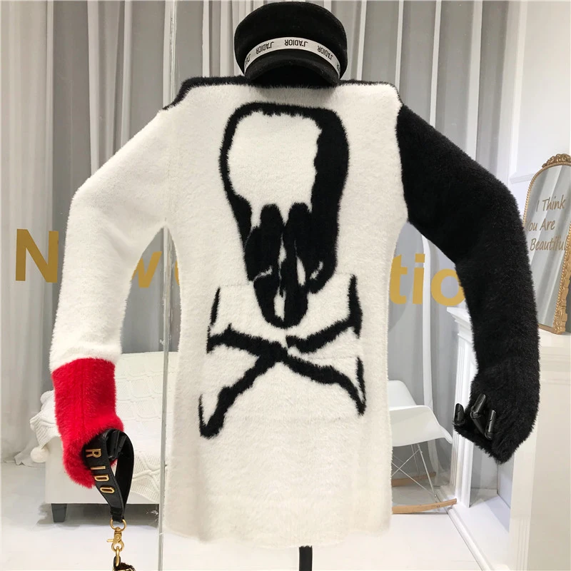 Best Offer Slash Neck Fashion Women's Free Knitted Sweater High Street Print Women Sweater and Pullovers 2019 Autumn Winter tops