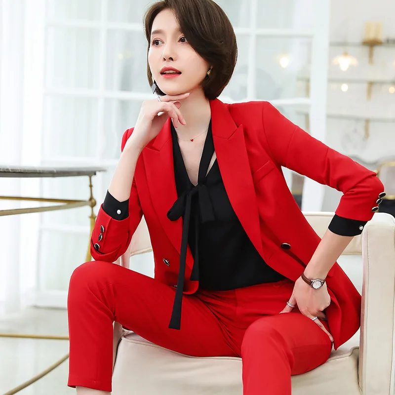 New Female Elegant Business Uniform 2 Piece Set Pant Suits for Ladies Women's Business office Work Wear Blazers Trouser Sets Jacket