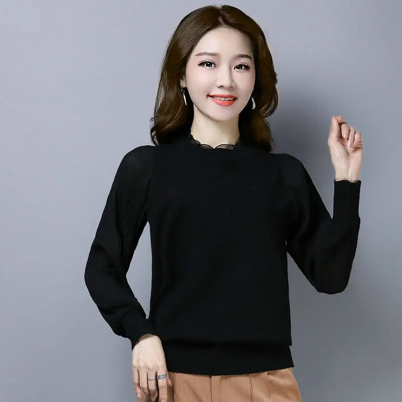Sale Office Lady Smart Casual Blouses Black White Ruffle Crew Neck Drape Crepe Sleeve Patchwork Tops Women Simplicity Shirts Autumn