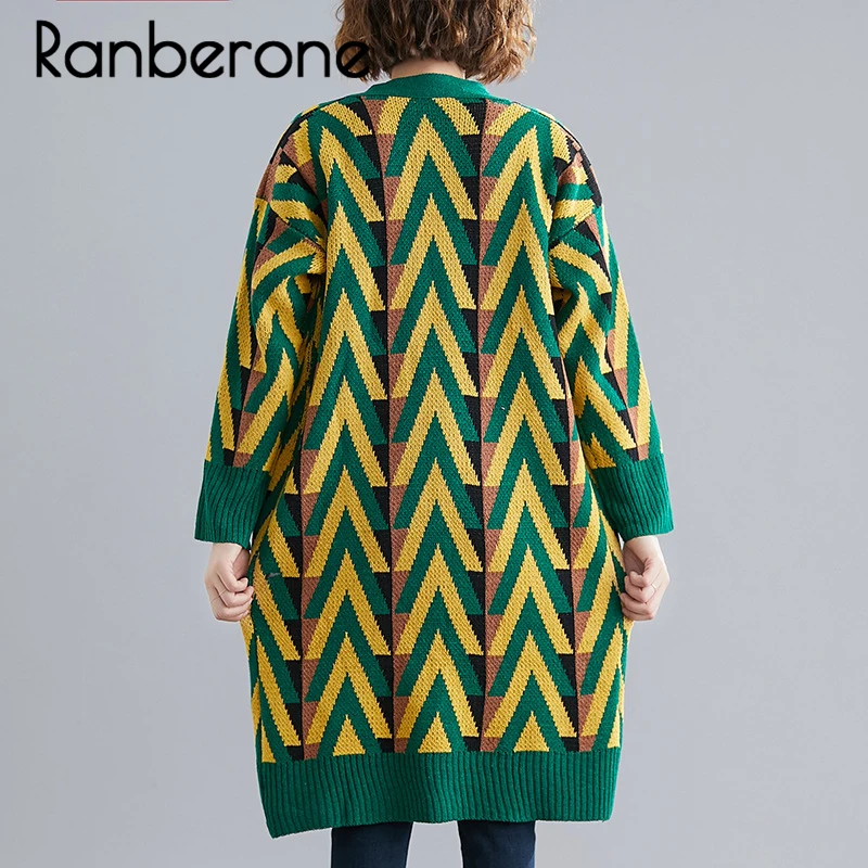 Sale Women Long Sweater Cardigan 2019 New Autumn Winter Long Sweater Jacket Geometric Knit Cardigans Long Overcoat Winter Coat Woman