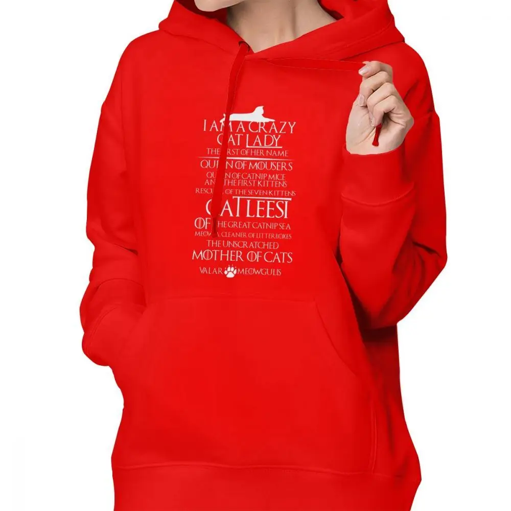New Game Of Thrones Hoodie Catleesi Mother Of Cats White On Black Version Hoodies Long-sleeve Big Size Hoodies Women Pullover Hoodie
