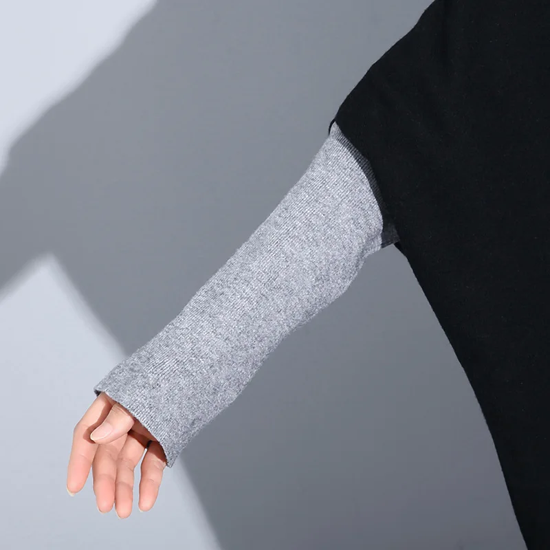 Best Offer Spring Women Knitted Oversize Dress Loose Fit Turtleneck Long Sweater Contrast Color Patchwork Pullover Bawing Sleeve Clothes