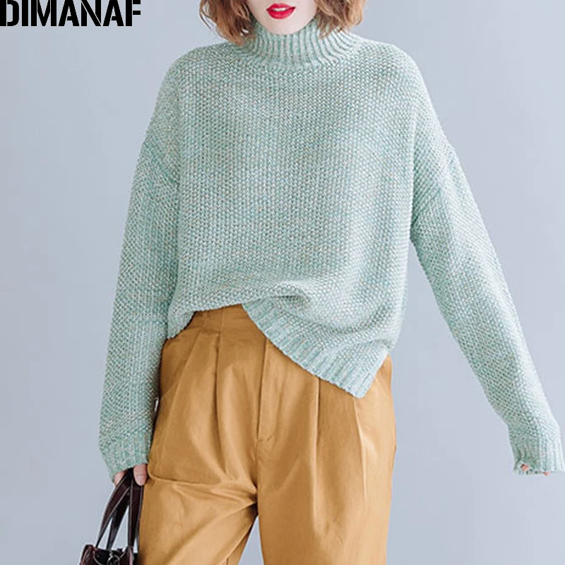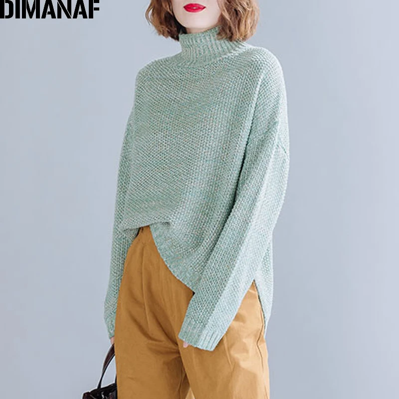 Buy DIMANAF Plus Size Women Sweater Autumn Winter Warm Knitting Thick Turtleneck Female Lady Basic Pullovers Fashion Clothing 2019