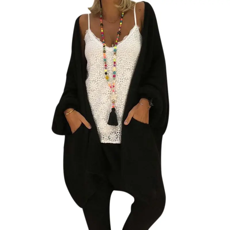 New Women Long Sleeved Fashion Cardigans With Pockets Casual Warm Sweater Loose V Neck Overcoat Cardigans NS
