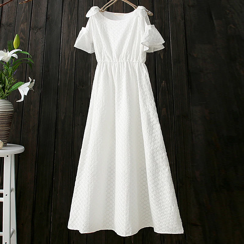Get this 2017 summer bow strapless 100% cotton cloth embroidery flower slim short-sleeve dress full dress with limited time discount by pressing the button below