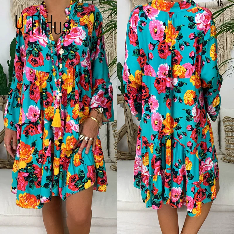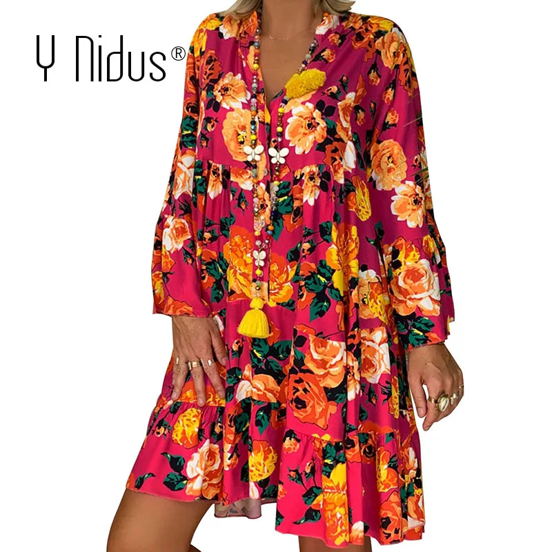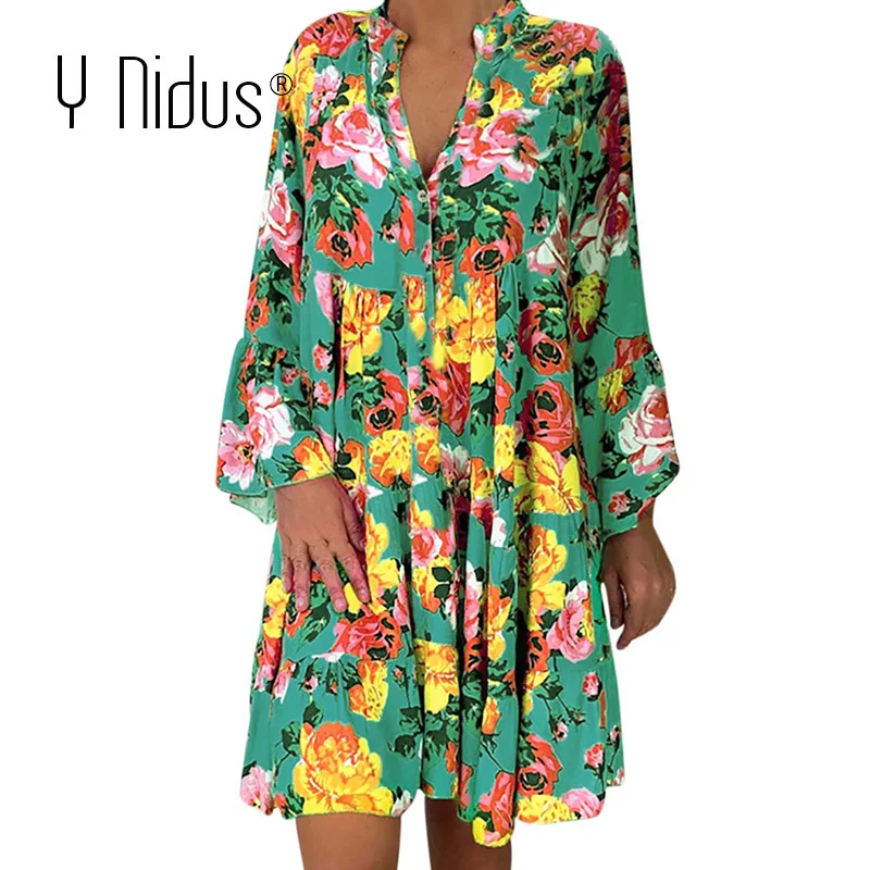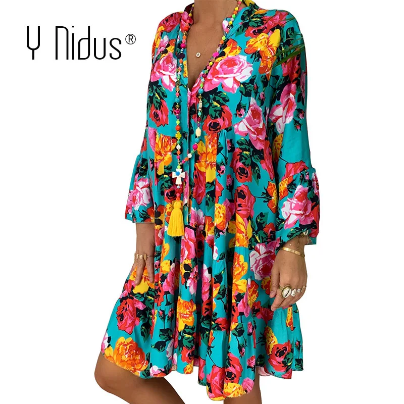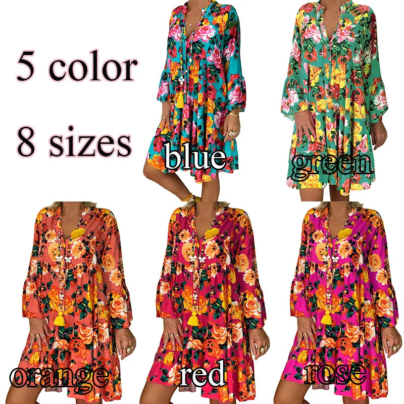 New Summer Floral Dresses Mini Women Boho Spring Print Party Dress 2020 Plus Size Short Beach Dresses Casual Loose Sundress 5XL