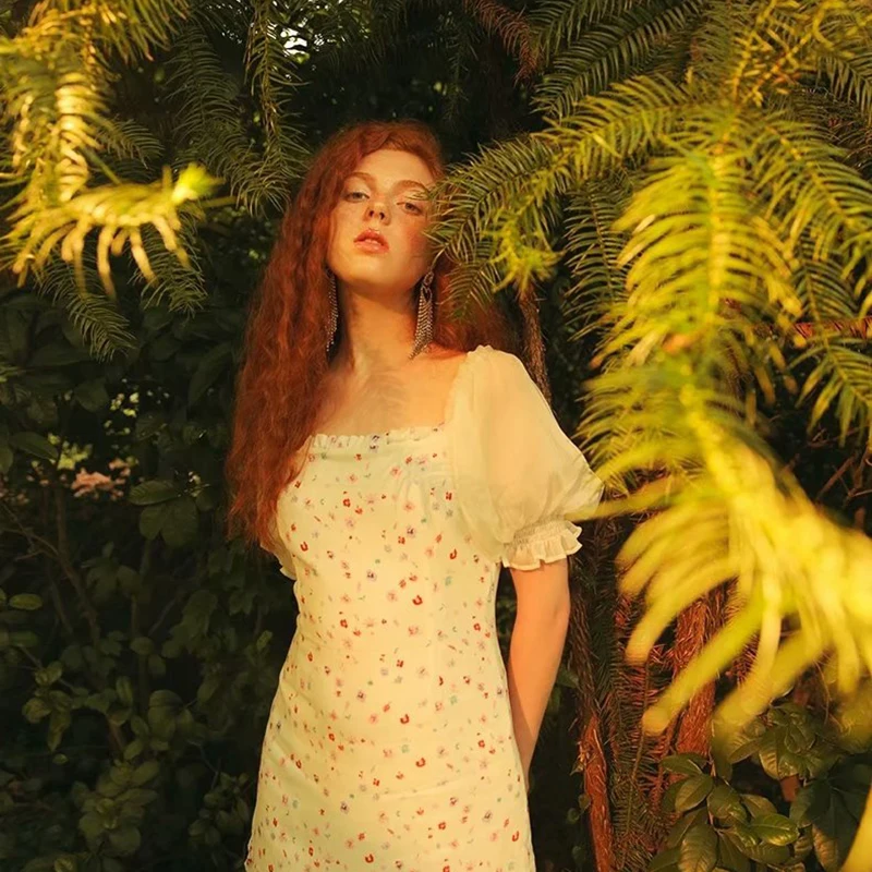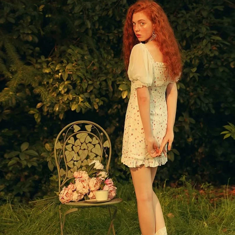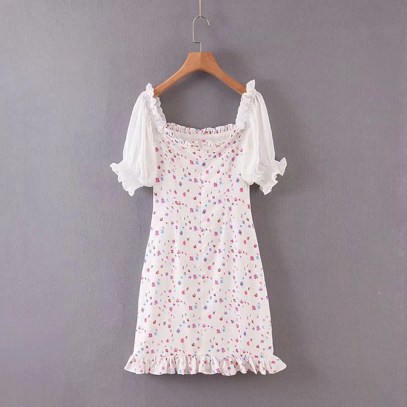 Promo KONDALA women dress summer za 2020 ruffles floral print vintage mini dress butterfly sleeve square collar dresses female vestido