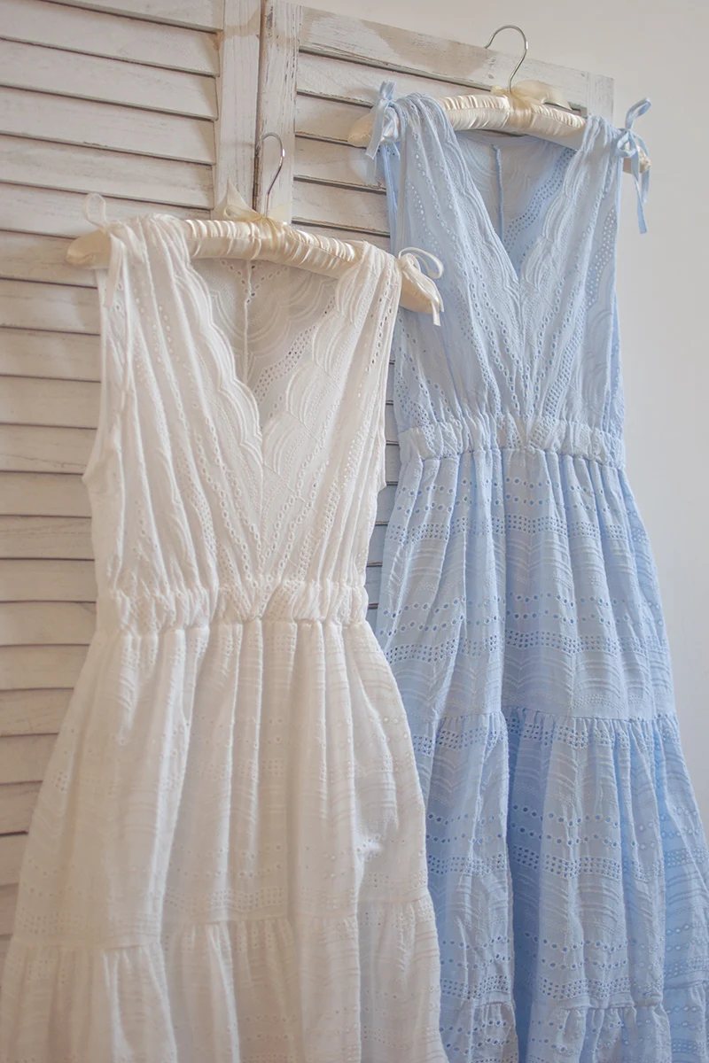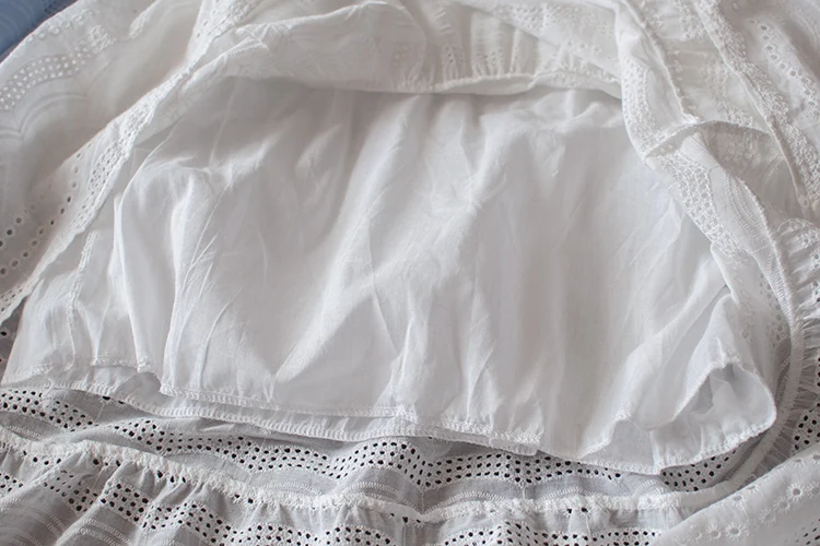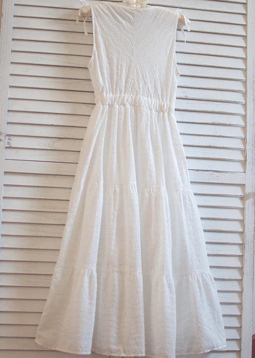 Sale Free Shipping High Quality 2019 New Lace Cotton Embroidery Dress Summer Long Mid Calf Sleeveless White Dress Japan Style V-neck